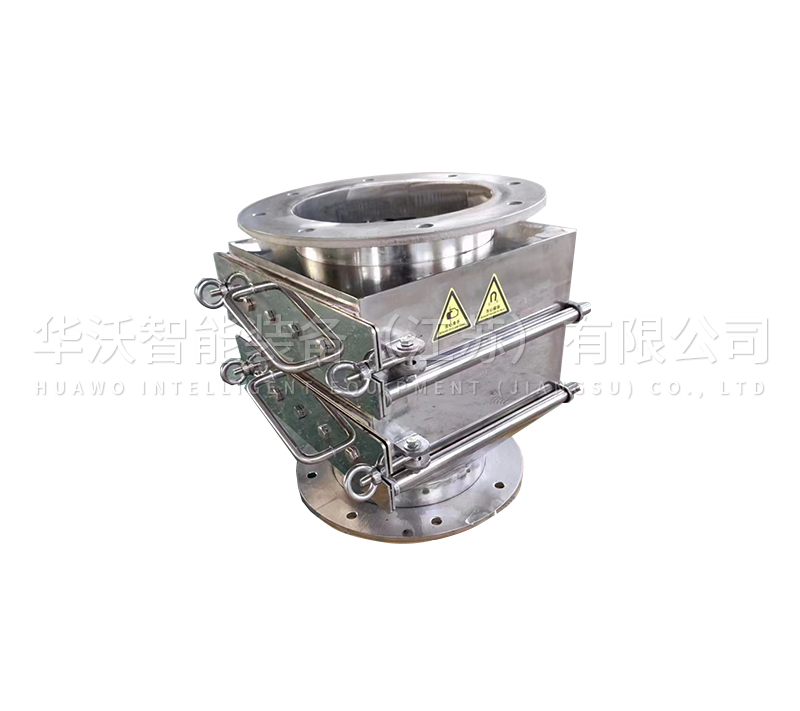 当物料从顶部进料垂直落下时经过磁棒区域时里头的铁杂质就会被磁化,从而牢牢的吸附在磁棒上。